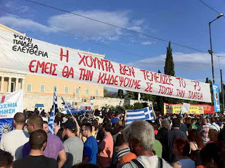 Οι εντάσεις των προηγούμενων ημερών απουσίαζαν από την σημερινή συγκέντρωση των αγανακτισμένων πολιτών, με τους διαδηλωτές να αποδοκιμάζουν οργισμένα την εμφάνιση αστυνομικών δυνάμεων με αφορμή τις τυφλές επιθέσεις που πραγματοποίησαν στη διάρκεια των συλλαλητηρίων της περασμένης εβδομάδας.