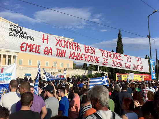 Με πολύ καλή συμμετοχή και σε μια ατμόσφαιρα «ετοιμοπόλεμη», οι «Αγανακτισμένοι» πολίτες βρέθηκαν για 41η συνεχόμενη ημέρα σε ακόμη μία ειρηνική συγκέντρωση κατά της μνημονιακής κυβέρνησης, των μέτρων λιτότητας, της ανεργίας και της διαφθοράς στην πλατεία Συντάγματος.